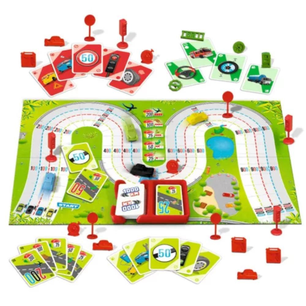 Indulj el egy különleges kártyás autóversenyen, ahol minden megtett kilométer számít! Az 1000 km egy klasszikus családi játék, amelyben nemcsak a gyorsaság, hanem a leleményesség és a taktika is döntő fontosságú. A légkör egyszerre könnyed és feszült: miközben próbálsz minél messzebbre jutni, ellenfeleid akadályokat gördítenek az utadba. A játék célja egyszerű: elsőként elérni 1000 kilométert. Minden körben új kártyát húzol, lehetőséged nyílik kilométereket megtenni, támadással lassítani az ellenfeleket vagy épp védekezni a rád mért csapások ellen. Egy váratlan defekt, üzemanyaghiány vagy sebességkorlátozás könnyen megakaszthatja a haladásod, de ügyes lapkezeléssel visszatérhetsz a versenybe. Különleges védelmi kártyákkal nemcsak kivédheted az akadályokat, hanem extra pontokat is gyűjthetsz.