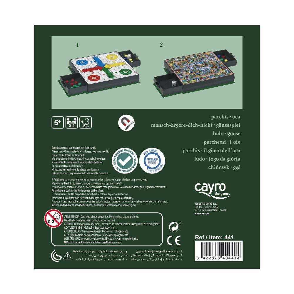 Két klasszikus játék, a Ki nevet a végén? és a Lúdjáték most elérhető egy kompakt, mágneses formában! A tartós műanyag és mágneses komponensek biztosítják, hogy a játék elemei stabilan a helyükön maradjanak, még utazás közben is. Ideális választás utazóknak vagy gyerekes családoknak, akik szeretik a sokoldalú társasjátékokat. A játékmenet könnyen átváltható az egyik vagy másik játékra; cél, hogy a figurád a "célmezőbe" érjen vagy Lúd játék esetén a lúd mezőjéig juss, a dobókocka segítségével. Kompakt és nyelvfüggetlen.