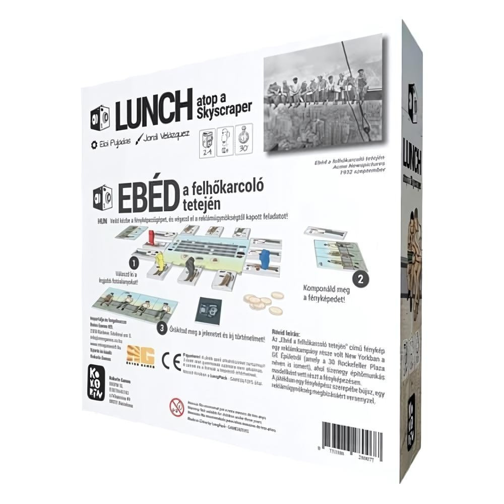 Az „Ebéd a felhőkarcoló tetején – LUNCH atop a Skyscraper” társasjátékban egy fényképész szerepébe bújsz, és egy ikonikus jelenetet próbálsz minél ügyesebben újraalkotni. A cél, hogy az „Ebéd a felhőkarcoló tetején” hangulatát felidézve minél több pontot gyűjts, és a lehető legjobban sikerült felvételt készítsd el. Ehhez építőmunkás-lapkákat gyűjtesz, majd a megfelelő sorrendben rendezed el őket, hogy összeálljon a képed. A pontokat a 8 ismertetőjegy leghosszabb, megszakítás nélküli sorozataiért kapod.