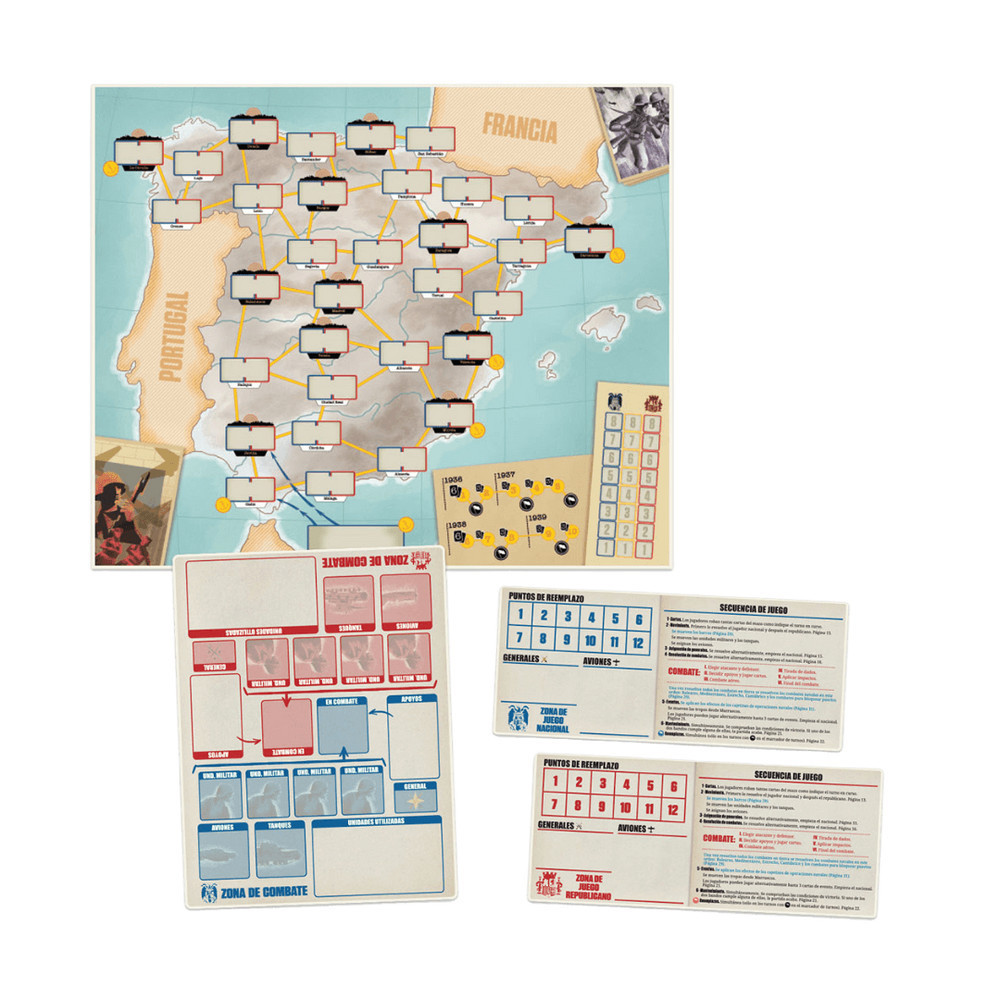 Utazz vissza az időben és éld át a történelem egy kiemelkedő eseményét a spanyol polgárháború izgalmas világában! Az ESPAÑA 1936 kétjátékos szimulációs játékban vállalhatsz szerepet, ahol az események alakulását a döntéseid határozzák meg. A játék angol nyelvű. A játék során a Spanyolországot ábrázoló táblán, zónákra osztott területeken vezetheted csapataidat. Felkészültségedet a kártyák és operatív jelölők használata teszi próbára, lehetőséget adva különböző harci helyzetek kezelésére. A játékmenet egyszerű, mégis nagyszerűen adja vissza a konfliktus dinamikáját. A doboz tartalma: