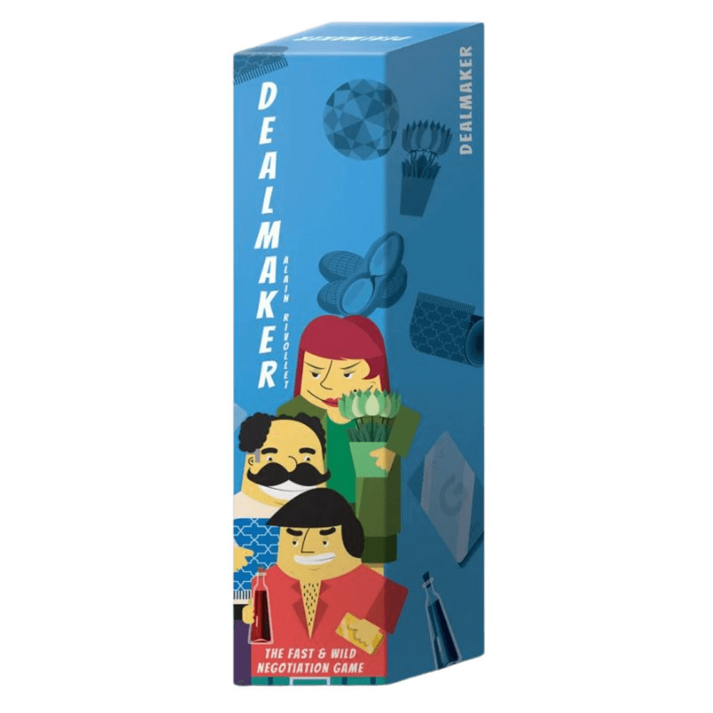Üzletelj bármivel, amit csak el tudsz képzelni! A Deal Maker az izgalmas üzletkötések játéka, ahol a kreatív cserebere és a ravasz alkudozás vezet a sikerhez. Gondoltad volna, hogy néhány földimogyoró elcserélhető egy kis aranyra? Fontos a rafináltság! Ne hagyd ki ezt a lehetőséget, hogy szórakoztató üzleteket köss családoddal és barátaiddal. Vidám és heves tárgyalások várnak rád, ahol a taktikád határozza meg a sikert. Legyél rámenős és ragadd meg minden lehetőséget, vagy mikromanageld az egészet a háttérből és szerezd meg az előnyöket! Akármelyik is legyen a stílusod, ha jól csinálod, nagy előnyöd lesz. Minél jobban alkudozol, annál több pontot gyűjtesz: a legtöbb pontot szerző játékos nyer! Készülj fel az évszázad üzletére a Deal Makerben, és rendeld meg most! Játékosok száma: 3-5 fő. Játékidő: 20-30 perc. Ajánlott életkor: 8+ év.