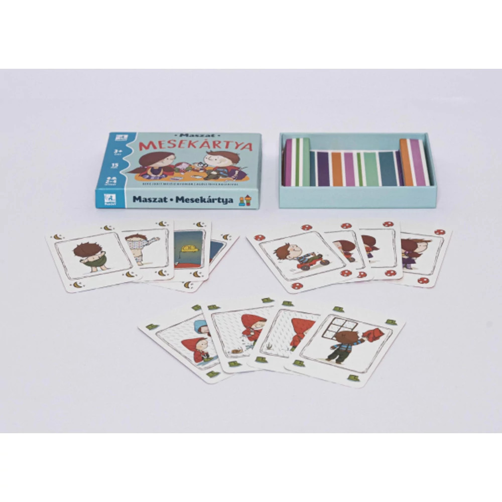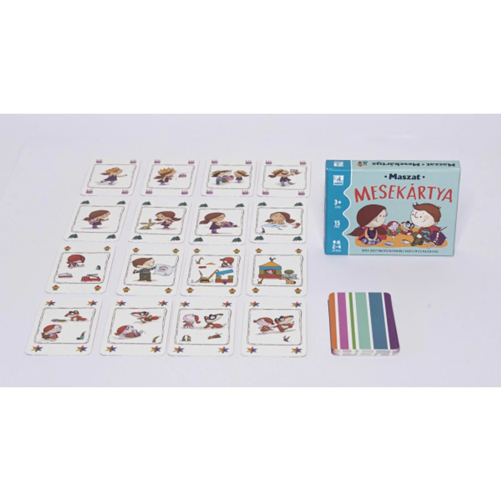Fedezd fel, hogy Sári és Maszat hogyan töltik a napjukat ezekben a varázslatos mesékben! Gyűjtsd össze a történethez tartozó lapokat, és merülj el Maszat, Sári, Hóchóc és Pötyi baba izgalmas kalandjaiban! Ha már sikerült összeállítanod egy meséhez tartozó lapokat, meséld el te is, hogy mi minden történt veled ma! Ez a fejlesztő kártyajáték a legkisebbeknek készült.
