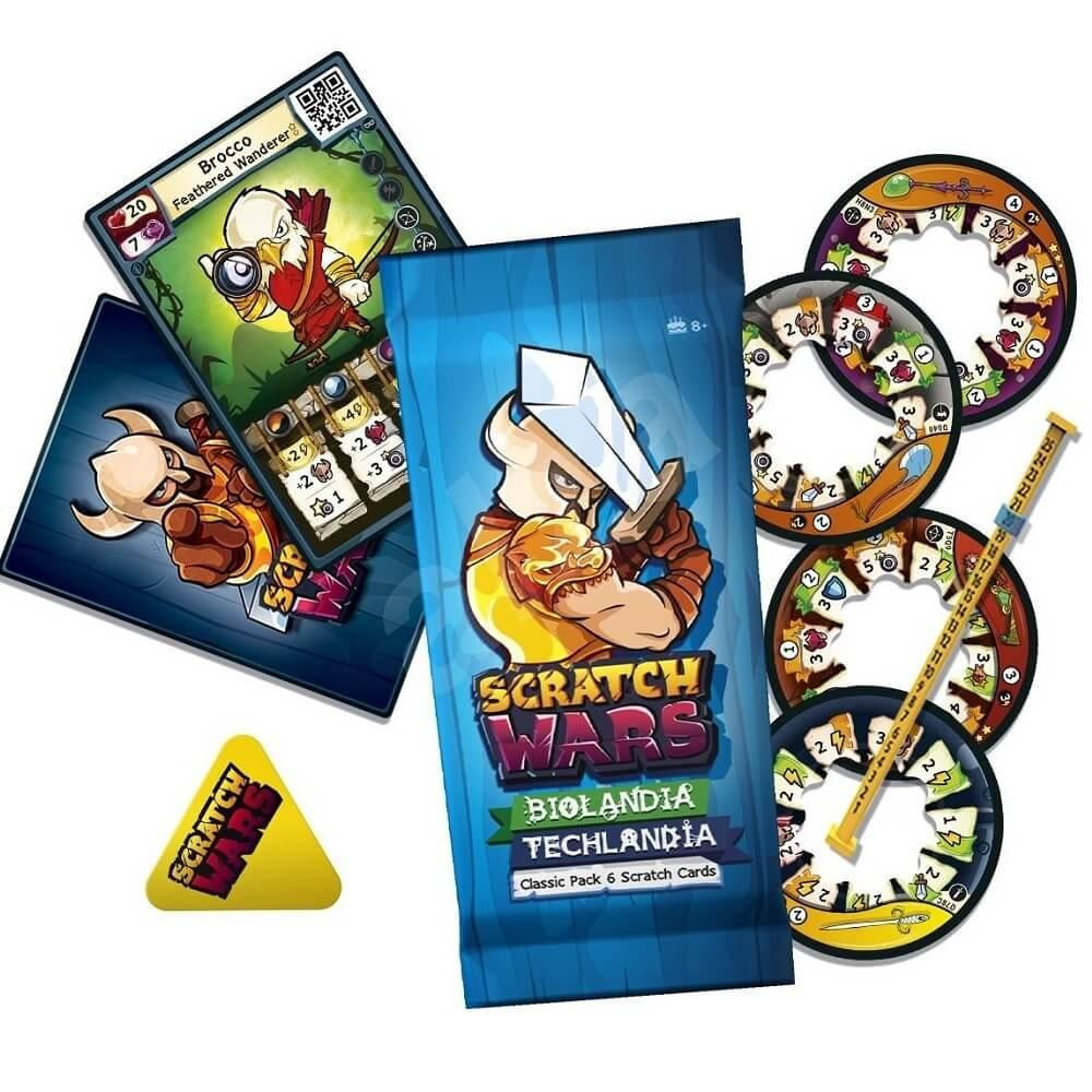 Gyűjts hősöket, legendás tárgyakat, és mérkőzz meg másokkal a Scratch Wars világában! Fedezd fel a csomagokban rejlő egyedi képességű lapokat, és használd fel okosan a bennük rejlő lehetőségeket. Játssz barátaiddal online, és mutasd meg, ki a legjobb stratéga! Vajon mit rejt a te tasakod? A Scratch Wars csomagok mindegyikében egyedi kártyák találhatóak. Kapard le a kártyák szürke részeit, hogy felfedezd, milyen képességekre tettél szert! A játék indításához mindössze két kártyára van szükséged: egy hősre és egy fegyverre. Minden hős saját névvel és kezdőértékkel rendelkezik, és a megfelelő fegyverekkel a kezében félelmetes ellenféllé válhat. Később akár 5 különböző fegyverrel is felszerelheted hősödet. Hogyan is zajlik a küzdelem?