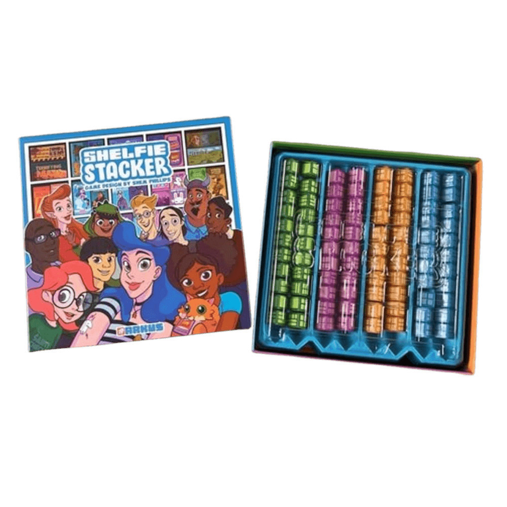 Szóval beszereztél egy új játékot, ugye? Esetleg végre megkaptad azt a kiegészítőt, amire már oly régóta vártál? Most jön az igazi kihívás: hogyan fogod elhelyezni az ábécé szerint rendezett, színkódolt és tökéletesen kialakított társasjáték-polcodon ezt az új szerzeményt! A Shelfie Stacker játékban a játékosok azért versenyeznek, hogy ki tudja a legmenőbb társasjáték-gyűjteményt összeállítani, gondosan megtöltve polcaikat legújabb szerzeményeikkel. A játék 7 fordulón keresztül zajlik. Minden körben három véletlenszerűen kidobott és halmokba helyezett kockacsoport jelenik meg, amelyek a társasjátékokat jelképezik. A játékosoknak a kezükben lévő 8 akciókártyából kell kiválasztaniuk 1-et, amit képpel lefelé kijátszanak. Ezek a kártyák nemcsak a kör sorrendjét határozzák meg, hanem egy egyszeri képességet is biztosítanak, ami segít a játékosoknak jobban elrendezni a játékokat. Azonban gondos tervezés nélkül nem sokat ér ez a segítség. A 7 forduló végén az a játékos nyer, aki a legjobban rendezett polccal rendelkezik!