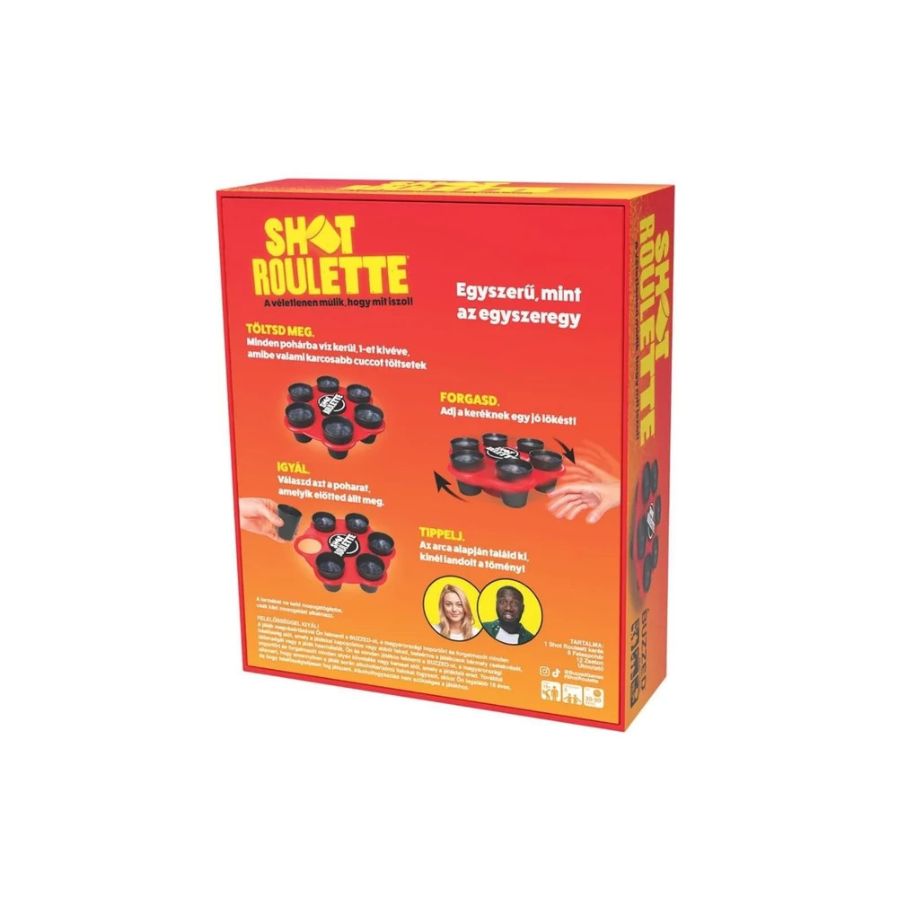 Pörög a roulette, a poharak sorban állnak… vajon rád vár a következő shot? Nevetések, izgalom és egy kis szerencse – ebben a játékban minden korty újabb fordulatot hoz. Tökéletes választás, ha fel akarod pörgetni az estét. A A hangulat forrósodik és mindenki izgatottan várja a következő fordulatot – vajon iszol vagy csak a többiek tréfáján nevetsz? A móka addig tart, míg a poharakból el nem fogy a meglepetés: minden forgatás új arcokat, kacagást és emlékezetes pillanatokat hoz. Ebben az egyszerű és laza parti játékban a játékosok sorra pörgetnek egy kis roulette-tárcsát, a rajta álló számnak megfelelő poharat pedig fel kell venniük és meginniuk – víz vagy alkoholos shot, ez a tét. A kérdés: Ki marad talpon a végéig? A játék addiktív, gyors körökkel működik és garantáltan felpörgeti a hangulatot. A játék angol nyelvű! Doboz tartalma:
