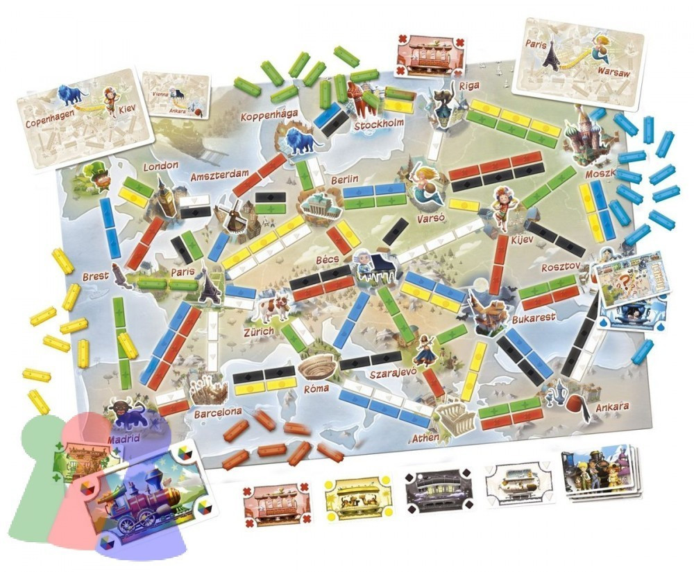 Ha szereted a kalandokat és a vasúti utazásokat, akkor a Ticket to Ride - Az első utazás társasjáték biztosan elnyeri majd tetszésedet. Fedezd fel Európa csodás világát, és szerezz pontokat a menetjegyeid teljesítésével! A játék garantáltan izgalmas és szórakoztató időtöltést kínál a barátaiddal vagy a családoddal.