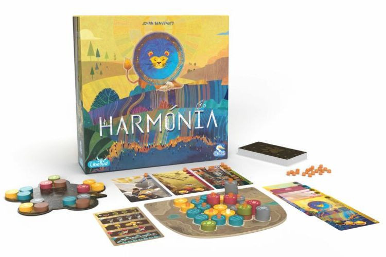A Harmónia egy színes logikai családi társasjáték, amelyben a játékosok tájkorongokból építenek ki különböző élőhelyeket az állatok számára. A cél, hogy a legtöbb pontot gyűjtsd össze, okosan integrálva az élőhelyeket a tájképedbe és minél több állatot letelepítve.