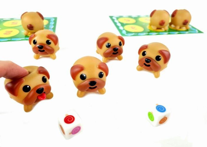 A mopszok mind megették a nyalókákat! Szerencsére a nyelvük azonban a nyalóka színére változik, amelyet megettek! Minden körben próbáld meg párosítani a két, a dobókockán lévő nyalókát azzal a két mopszal, amelyről úgy gondolod, hogy azok nyalogatták! Ha finoman megnyomod a kis kutyákat, a nyelvük kinyúlik! Nem számít, mennyire cukiak ezek a pufók kutyusok, ezt nem úszhatják meg... Az a játékos nyer, aki elsőként párosítja össze a 6 mopszot a nyalókák színeivel!