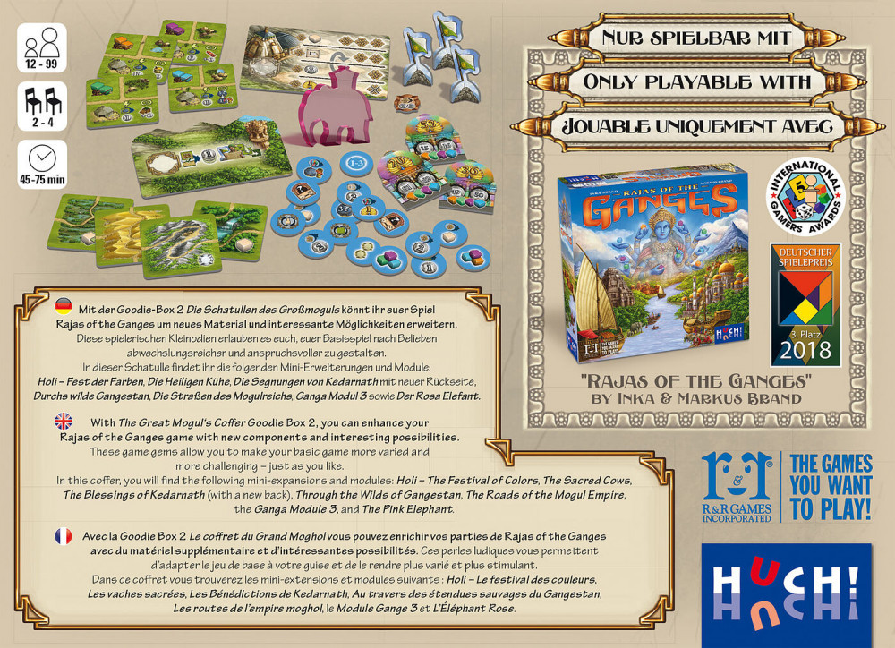 Ha szereted a stratégiai játékokat, és szeretnéd még izgalmasabbá tenni a Rajas of the Ganges játékot, akkor a Goodie Box 2 kiegészítőt neked találták ki. Rendeld meg most, és garantáltan élvezetes és izgalmas játékélményben lesz részed!