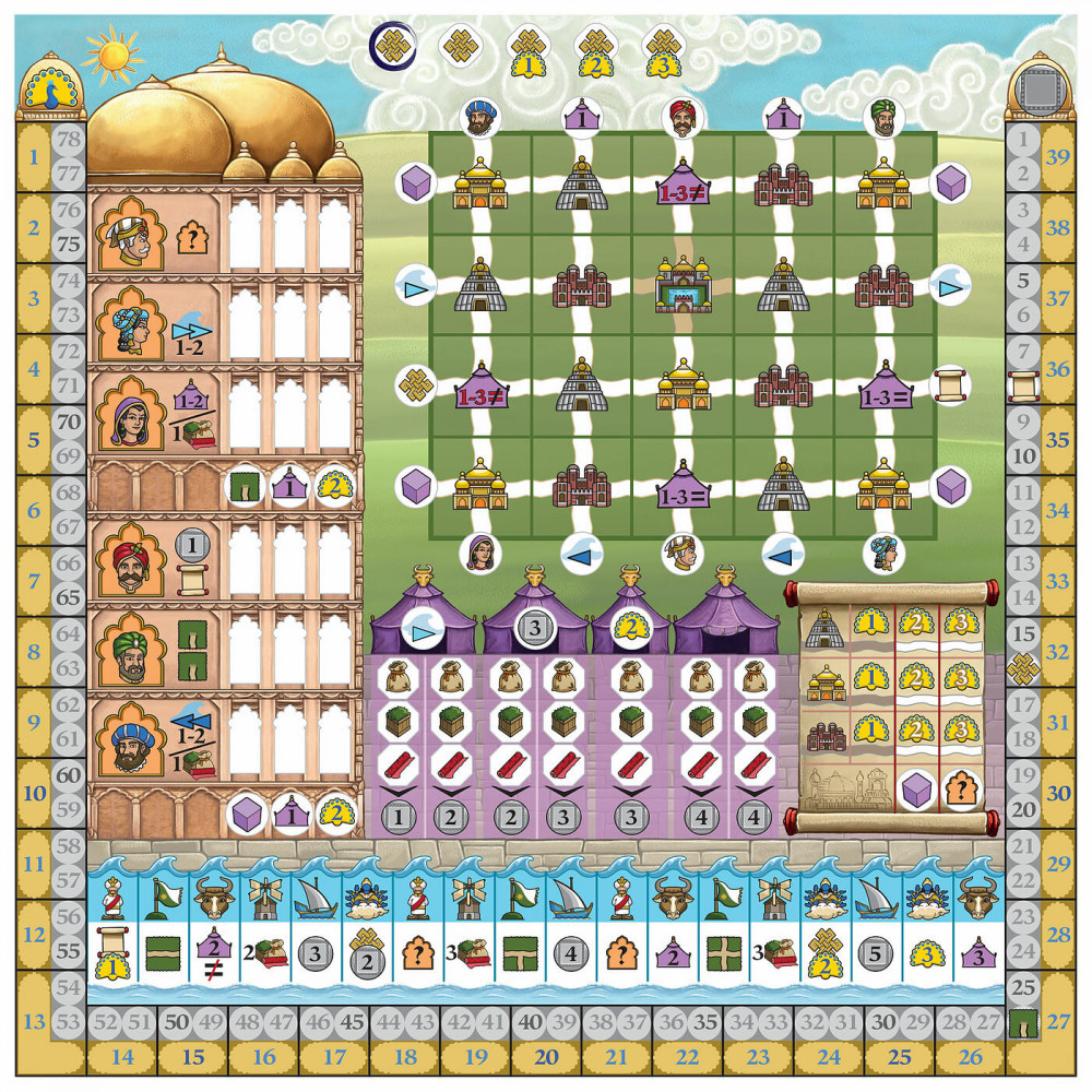 A játékmenet izgalmas és gyors tempójú. A játékosoknak fel kell építeniük a tartományukat, árut kell gyűjteniük és eladniuk a piacon, és küzdeniük kell a palota befolyásos személyiségeinek kegyeiért. Az alkalmazott kockák döntik el, hogy milyen lehetőségek állnak a játékosok rendelkezésre, ezáltal szélesíti a játéktér lehetőségeit.