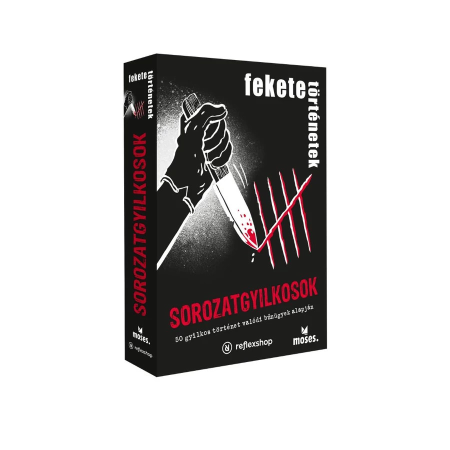 Fekete történetek: Sorozatgyilkosok társasjáték - a játék, amely megborzongtatja a legbátrabbakat is. Találkozz olyan rettegett gyilkosok történeteivel, akikkel csak a legmerészebb álmaidban szeretnél szemtől szemben állni. A játékban 50 valós sorozatgyilkos története vár rád, és olyan bűnügyeket kell megoldanod, amelyek sokszor évekig fejtörést okoztak a nyomozóknak.
