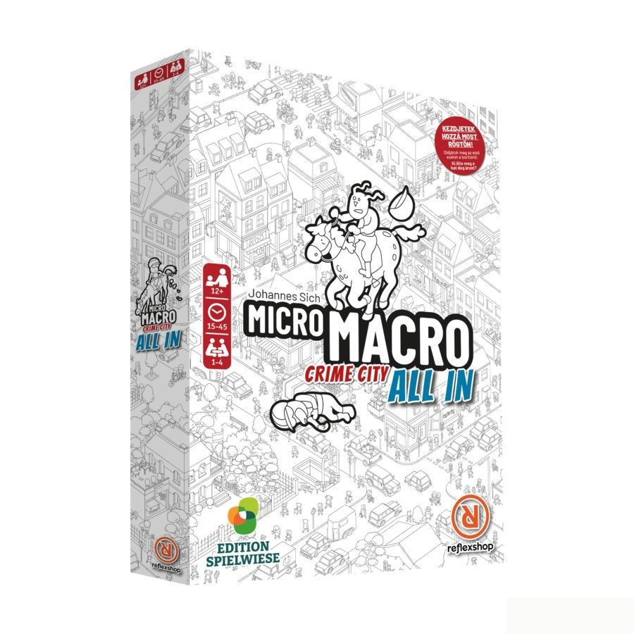A MicroMacro Crime City: All in társasjáték egy újabb izgalmas kalandra invitálja a játékosokat a bűnözés által sújtott városban. A játék egy óriási várostérképen zajlik, amelyen 16 különböző bűncselekmény megoldása a feladat. Az újabb kihívásokkal teli játékban 1-4 játékos vehet részt, akiknek az a feladata, hogy nyomozóként megoldják a rejtélyeket.