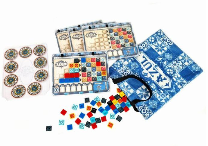 Az Azul Mini társasjáték tartalmazza a játékhoz szükséges összes elemet, így nem kell különösebb előkészületet tenned a játékhoz. A csomag tartalmazza a csempéket, a játékoslapokat, gyártósor kijelzőket, pontszámlálókat, kezdőjátékos jelzőket, és egy lenvászonzsákot is.