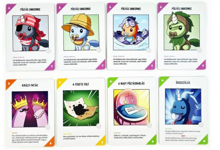 Az "Unikornisok: A rémes ménes - Patakoptató kalandok" egy pörgős és ügyességi alapú kiegészítője a társasjátéknak. A játékosok különleges egyszarvúak segítségével próbálnak rájönni egymás trükkjeire és kivédeni azokat.
